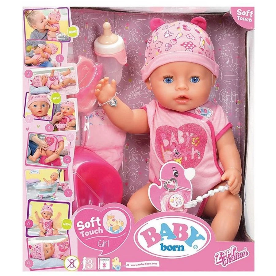 This Baby Born Interactive Doll comes with 11 different accessories and 9 life-like functions. The box includes the baby girl in her bodysuit and hat. In addition to this, the box includes a spoon, bowl, bottle, nappy, sachet of food, potty, dummy and a dummy chain. The doll girl also comes with a birth certificate and two heart-shaped bracelets. One of the bracelets go on the baby, and the other one is for your child. The baby opens and closes its eyes and can cry real tears. Arms, legs and head are movable, which makes it easy for children to carry out the other functions for the baby like feeding the baby and giving it a bath. Children have fun seeing the baby making pee and poo. They can also change nappies and take the baby with them to the bath. No batteries are required for the doll to carry out its functions. It is waterproof.