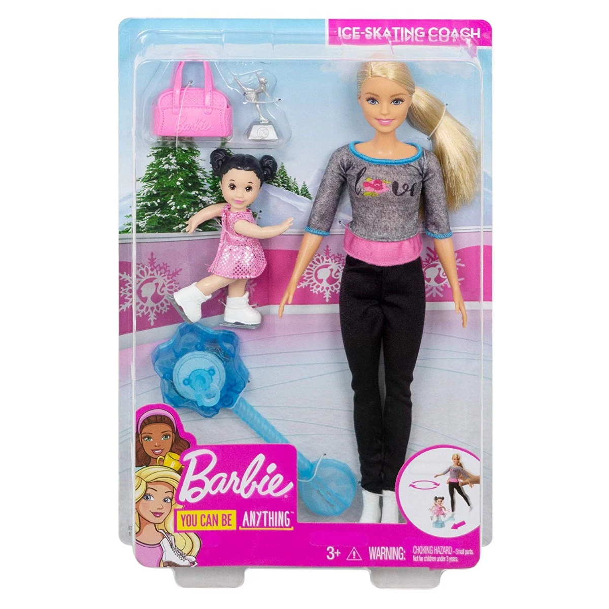 Follow your dream of becoming a champion in gymnastics or ice skating with Barbie. These sports-themed playsets are perfect for young athletes aged 3+. Each set contains a Barbie doll and a toddler student. It also comes with functional sports equipment – a balance beam or an ice skating rink. It’s straightforward to use and no batteries needed. Just place the toddler student on top of the balance beam and slide the knob to watch her do the perfect flips. Place the ice skating student on the rink and push the button to see her glide and spin. Toddler students are always ready to perform in their cute outfits while Barbie still looks fashionable in her trendy sports attire and gym bag. Practice every day to execute the perfect routine and receive a trophy from coach Barbie. Each set sold separately. Please choose between the Gymnastics Coach Set or Ice Skating Coach Set, or collect them all because you can be anything you want to be.