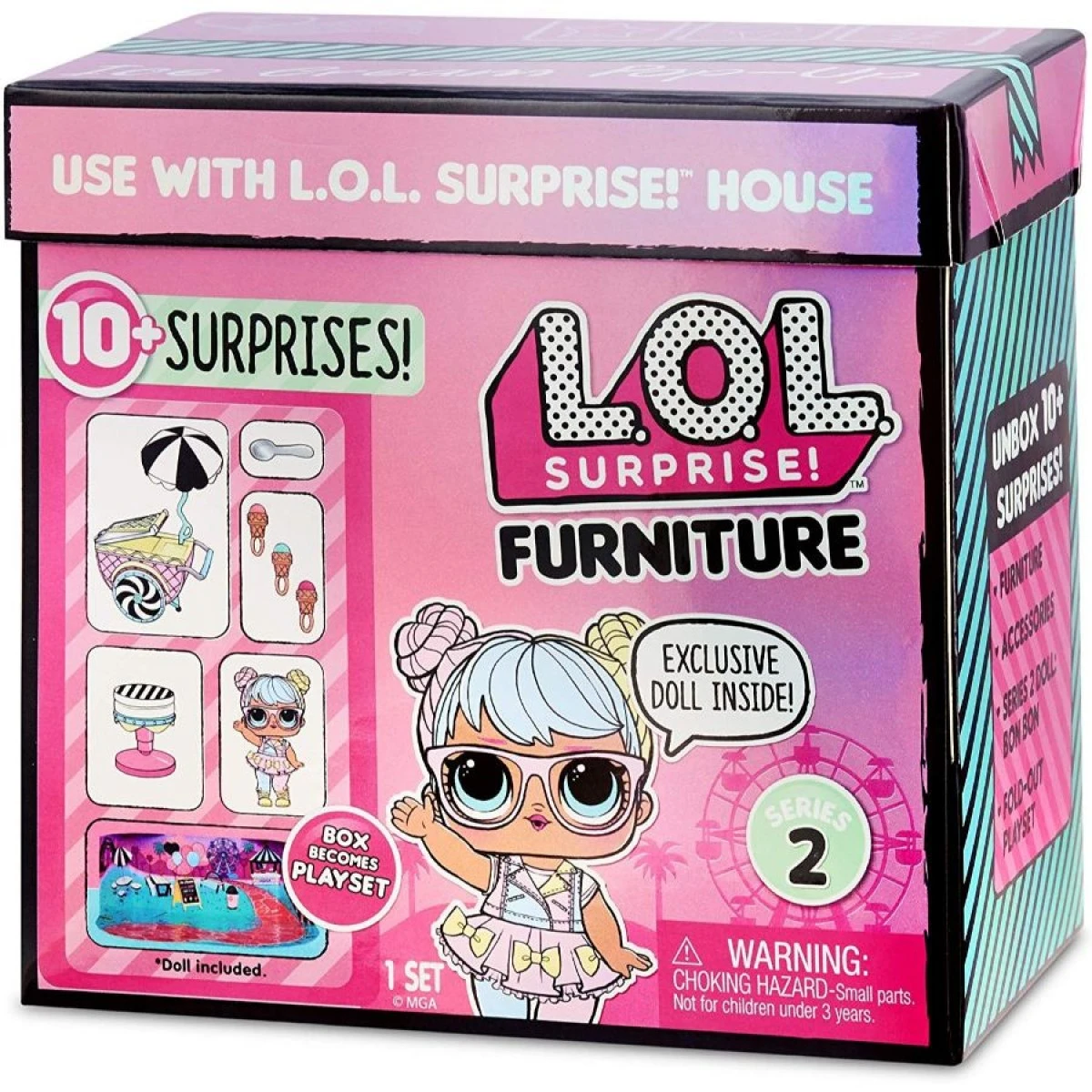 The LOL Surprise Furniture with Doll series of toys is a favourite of young girls because of the fun and surprise when these playsets are unpacked and opened. Exciting and always stylish, this LOL Surprise Furniture with Doll is the perfect gift for the fans of the LOL Surprise toy range. There are 10 surprises in store for your child in each pack waiting to be opened and explored including some fabulous accessories, furniture and fold-out playsets. Each box opens up to be the playset such as a beauty salon, a boutique, a bedroom and a cosy coupe small car set. Each set comes with a different doll. The surprises include outfits for the doll, accessories such as shoes, handbags, handphones and other accessories that the doll can wear or carry. The furniture all have working features such as a storage compartment in a seat, drawers in a wardrobe, places to store the accessories, opening the door for the cozy coupe. Suitable for ages 3 and up.