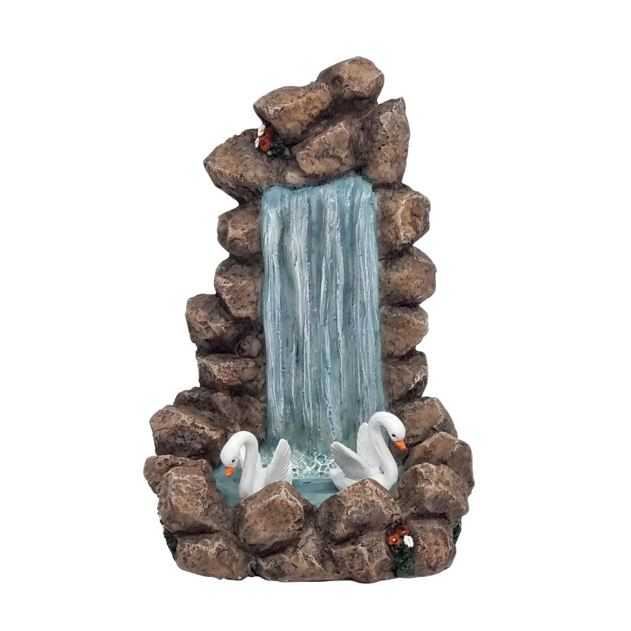 An enchanting little fairy waterfall perfect for your fairy garden. It looks magical and realistic. The waterfall figurine is made from resin and has been created and hand-painted to resemble an actual waterfall. There are beautiful brownish rocks amidst which the waterfall emerges, and at the landing of the waterfall are two gorgeous swans that are enjoying the cool water. A few pretty-looking flowers also seem to be growing amidst the rocks in this natural-looking waterfall. There are so many ways to use this little figurine – in the fairy garden, as a small decorative, in a snow globe, or for other art and craft work. This figurine looks attractive and will make a lovely gift for someone who admires such small intricate figurines. It can be presented to them on different occasions such as Christmas, Easter, Holiday Season and others. Fairy Waterfall with Swans is recommended for everyone.