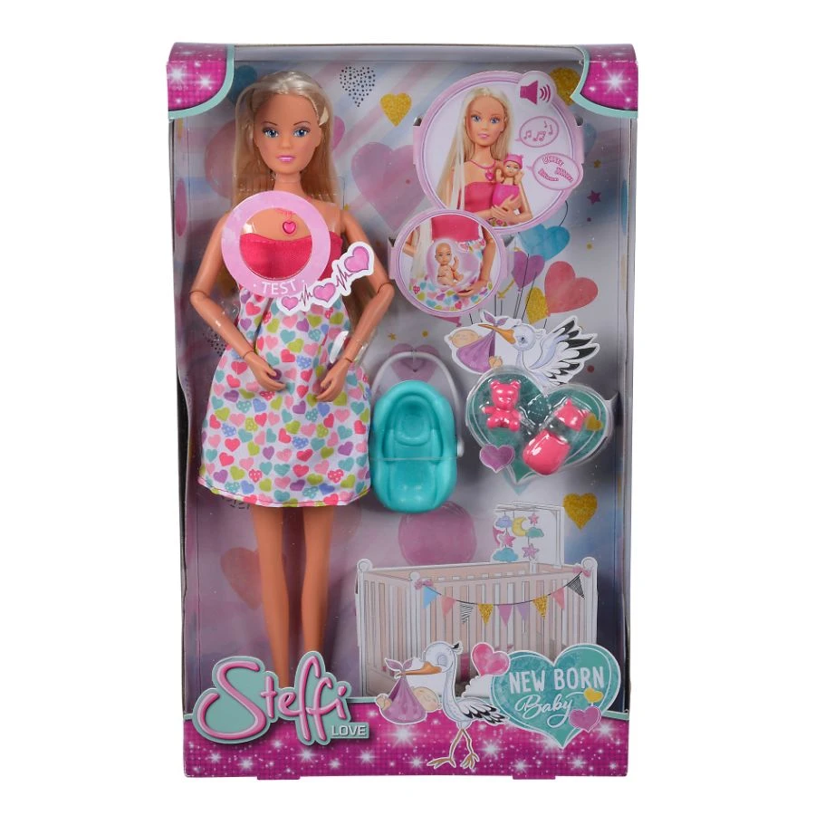Steffi is an expecting mom who is so excited about her baby’s arrival. Steffi is wearing a comfortable, colourful dress with heart shape print. Her blonde hair is neatly pulled back behind her ears. This doll kit has added many exciting sounds to make playtime more interesting for the children. Pressing the heart-shaped necklace of Steffi allows the kids to listen to an unborn baby’s heartbeat. If you press the necklace again, children will be able to hear the arrival announcement of a healthy baby and a happy mother. This kit includes many accessories such as a baby seat, blanket, teddy, cap, and more. This little doll kit would make an amazing gift for children on any occasion. Steffi Love New Born Baby Doll & Accessories is recommended for children aged 3 years and above.
